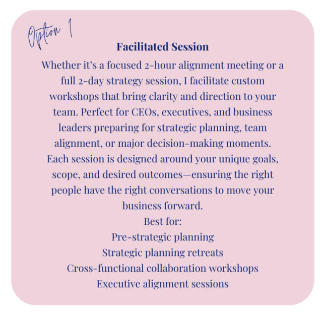 Hi, I'm Christa, Founder of Canoe Collaboration. I specialize in helping organizations tackle complex challenges through Facilitated Sessions and Fractional Chief-of-Staff services. With over 15 years of experience in operations management and key roles in corporate strategy and in-house facilitation, I know that the key to success lies in effective leadership and fostering collaboration.As your Fractional Chief of Staff, I work alongside your executive team, providing high-level strategy and leadership to ensure your goals are met. I’ll help optimize your operations, streamline processes, and create an environment of collaboration that drives growth—without the need for a full-time staff member.In addition to strategic leadership, I’m a skilled facilitator who thrives in guiding organizations through challenging conversations. Whether it’s leading difficult discussions, aligning teams, or helping you navigate change, I create collaborative spaces that allow for open dialogue and actionable solutions that stick. I've developed my experience in corporate America, leading very focused facilitated sessions.The Canoe Collaboration Difference